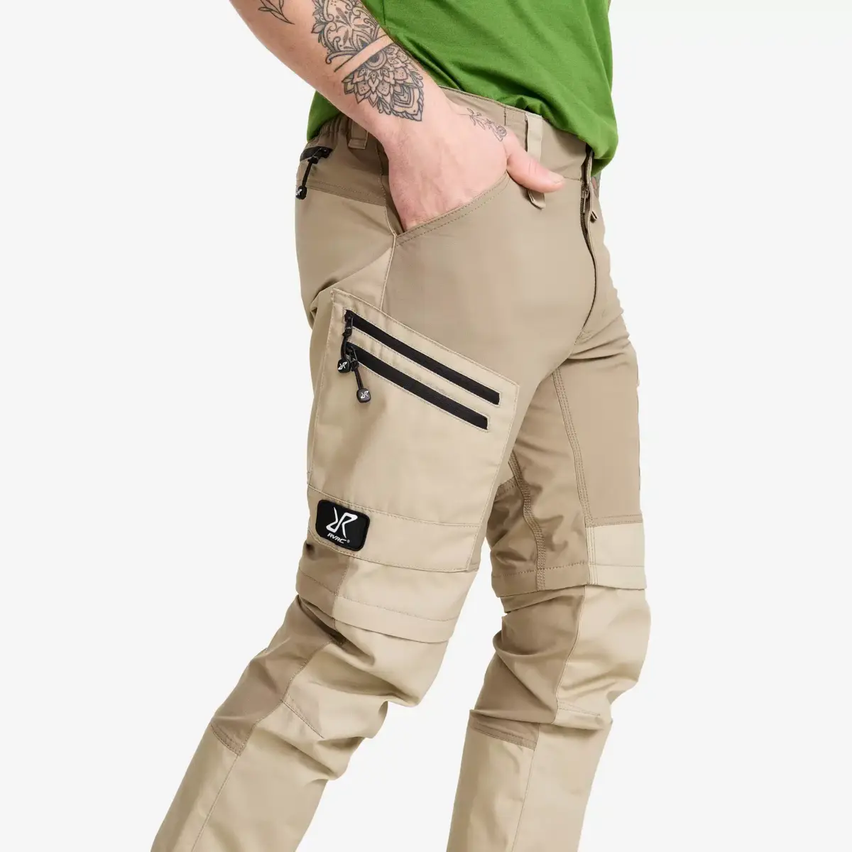 RVRC GP Pro Zip-off Pants är konvertibla utomhusbyxor som kan förvandlas till shorts på ett ögonblick. Dessa multifunktionella utomhusbyxor har avtagbara ben som kan zippas av vid knäna och är verkligen gjorda för att anpassas efter årstiderna. Precis som våra bästsäljande RVRC GP Pro Pants är de tillverkade av vår mest slitstarka polycotton-canvas, med förstärkningar vid anklarna och över knäna för att tåla hårt slitage. Sju praktiska fickor ger förvaring för snacks och små nödvändigheter, medan justerbara manschetter med stövelkrokar håller byxorna på plats. De 4-vägs stretchpanelerna upptill, på insidan av låren och bakom knäna ger extra komfort och en fantastisk passform. RVRC GP Pro Zip-off Pants är perfekta för den aktiva utomhusmänniskan som vill ha ett par byxor som också fungerar som shorts och passar i många olika miljöer, från skogen och trädgården till garaget.