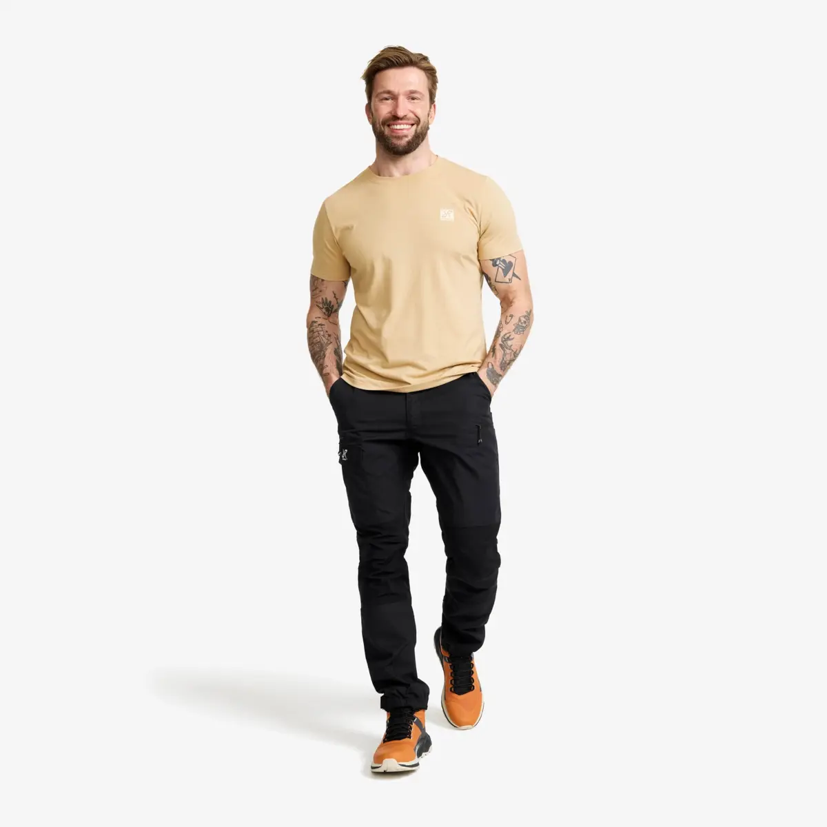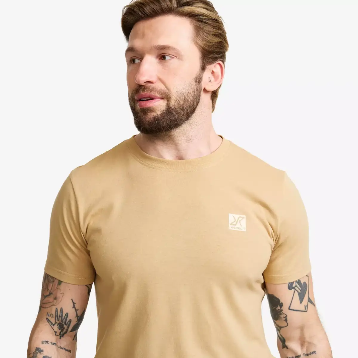 Easy Graphic Logo T-shirt Slim Fit för män, safari beige